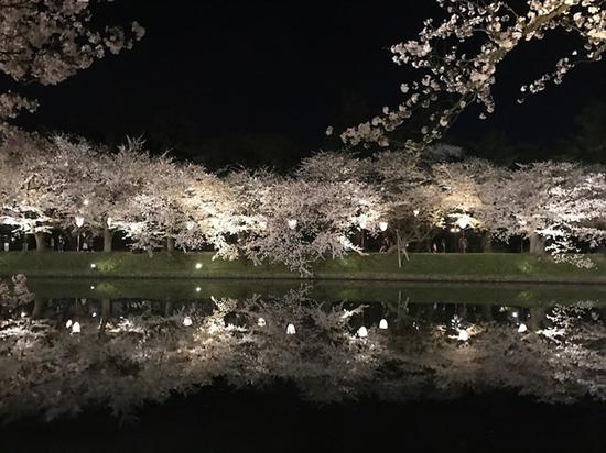 五一假期正是出游的好时机,各位小伙伴们有没有去哪里玩一玩呢?有人就利用这一假期,到动画《飞翔的魔女》的舞台日本青森县弘前市进行了一次圣地巡礼。如今正是樱花盛开的时候,而且在夜色与灯光的衬托下,弘前公园的景色更是美不胜收。 前方多图预警