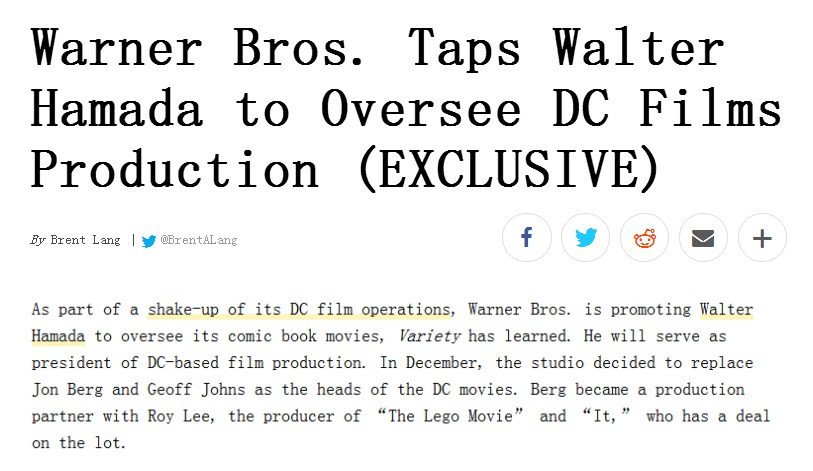 DC漫画公司是美国能与漫威漫画公司齐名的漫画巨头,近些年来DC和漫威一样致力于打造漫改电影。但是与漫威火遍全球的超级英雄电影相比,DC电影稍微有些逊色。虽然《神奇女侠》赢得了口碑与票房的双赢,但近期上映的《正义联盟》却并没有达到预期。据外媒报道,华纳将更换DC电影部门负责人。 华纳为DC电影部门找来的新负责人叫做沃尔特·浜田(Walter Hamada)。沃尔特·浜田曾经监制过不少高人气电影作品,比如《小丑回魂》《安娜贝尔》系列、《招魂》系列、《死神来了》系列等。其中去年上映的恐怖电影《小丑回魂》还入围了第23届评论家选择奖“最佳科幻、恐怖电影”。 接任DC电影部门负责人后, 沃尔特·浜田将负责华纳所有的漫改电影作品。 DC漫画公司创建于1934年。1938年6月在《动作漫画》创刊号上创造出世界上第一位超级英雄——超人,从此改写了美国漫画史。1939年5月,DC在《侦探漫画》第27期上创造出世界上第一位没有超能力的超级英雄——蝙蝠侠。旗下还拥有神奇女侠、闪电侠、绿灯侠、海王、钢骨、沙赞、火星猎人、绿箭侠、鹰侠、火风暴、原子侠、黑霹雳、蓝甲虫、命运博士、康斯坦丁、扎塔娜等超级英雄,和正义联盟、绿灯军团、美国正义协会、少年泰坦、黑暗正义联盟、自杀小队、超级英雄军团等超级英雄团队。 |