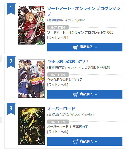 刀剑强势!最新一周轻小说销量榜公布