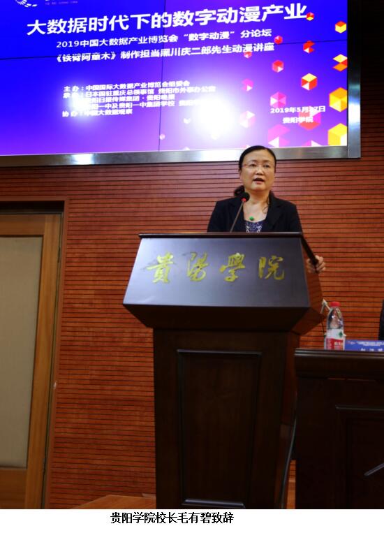 5月27日下午,2019中国国际大数据产业博览会“数字动漫”分论坛——大数据时代下的数字动漫产业在贵阳学院举行。日本动漫大师、《铁臂阿童木》制作担当黑川庆二郎先生以“大数据时代下的数字动漫产业”为主题,分享了自己在动漫领域中的成功经验,并与贵阳学院的300余名师生共话“数字未来”。本次分论坛由日本国驻重庆总领事馆、贵阳市外事办、贵阳日报传媒集团 贵阳晚报、贵阳一中及贵阳一中集团学校和贵阳学院承办。