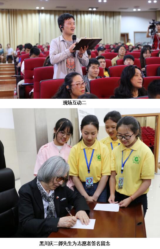 论坛上,黑川先生与台下学生进行了交流互动。学生们不仅就电脑制作与动漫配音、动漫产业与科技发展等领域进行了提问,还请黑川先生分享了《铁臂阿童木》制作幕后的故事。黑川先生对学生们的问题也都进行了深入浅出的回答。活动结束后黑川先生与为本次论坛服务的工作人员、志愿者合影留念,并为热情的同学们签名留念。